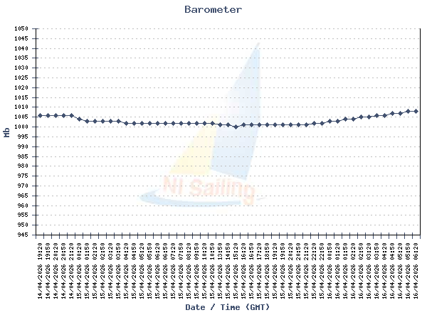 The graphs below show Barometer, Wind Speed and Temperature readings for the previous 24 hours.
